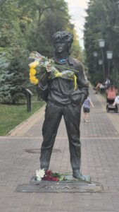 그날, 알마티의 또 다른 거리에서는 조용하지만 의미 깊은 추모의 순간이 있었다. 바로 러시아 록 음악의 전설이자 고려인 3세로 알려진 빅토르 초이의 35주기를 기리는 추모 행사와 작은 공연이 카반바이바트라와 툴렌지예바 교차로에 위치한 그의 동상 앞에서 열렸다. 이곳은 유명 커피숍과 문화 공간이 밀집해 있어 젊은이들이 자주 찾는 장소로, 빅토르 초이의 음악을 기억하는 이들이 자연스럽게 모여드는 공간이기도 하다.