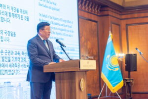이어 축사에 나선 자니벡 아브드라쇼프 카자흐스탄 외교대표는 “대한민국은 근면과 혁신을 기반으로 과학·기술·문화 분야에서 세계적 선도국가로 우뚝 섰다”며 “양국은 정치·경제·문화·교육 등 전 분야에서 긴밀히 협력해왔고, 2024년 교역 규모는 30억 달러를 넘어섰다”고 평가했다. 그는 또 삼성, 현대, LG, 롯데 등 한국 기업들의 활발한 활동과 고려인 동포 사회의 기여를 언급하며 “고려인들은 양국을 이어주는 든든한 가교”라고 강조했다.