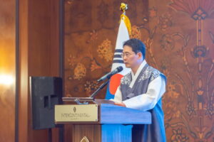 2025년 9월 30일 저녁 6시, 카자흐스탄 알마티 인터컨티넨탈 호텔에서 대한민국 국경일 행사가 성대하게 열렸다. 주알마티 대한민국 총영사관이 주최한 이번 행사에는 카자흐스탄 외교부, 알마티시 의회, 외교 사절단, 한인회 관계자를 비롯한 교민 대표 등 200여 명이 참석해 단기 4357년 개천절을 함께 기념했다.