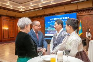 2025년 9월 30일 저녁 6시, 카자흐스탄 알마티 인터컨티넨탈 호텔에서 대한민국 국경일 행사가 성대하게 열렸다. 주알마티 대한민국 총영사관이 주최한 이번 행사에는 카자흐스탄 외교부, 알마티시 의회, 외교 사절단, 한인회 관계자를 비롯한 교민 대표 등 200여 명이 참석해 단기 4357년 개천절을 함께 기념했다.