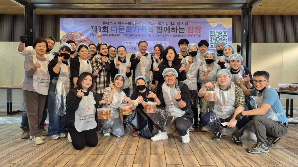 지난 11월 22일(토), 알마티 백대감 한식당에서 다문화가족협의회가 주최한 제3회 김장 행사가 열렸다. 카자흐스탄한인회, 카즈코리안(한인신문 온라인판), 신한파이낸스, BNK, 백대감 한식당, 천산등산학교 후원으로 이루어진 이번 행사는 교민사회와 현지인들이 함께 참여해 김장을 담그고 나누는 시간을 가지며, 한국의 대표적인 음식문화와 공동체 정신을 알리는 자리로 마련됐다.